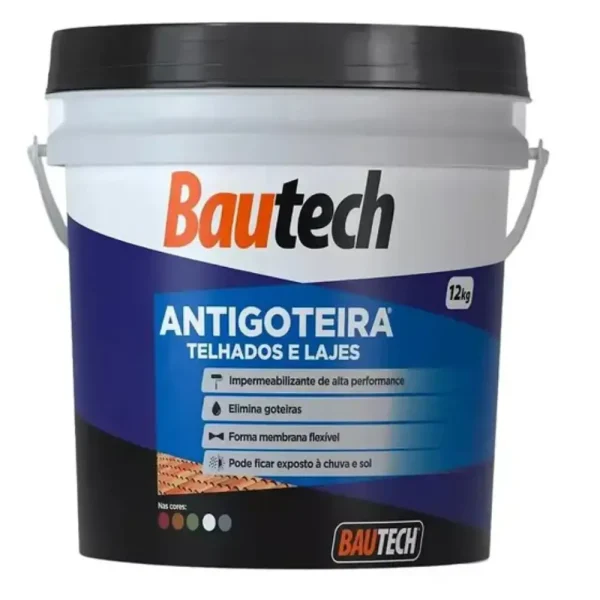 O BAUTECH ANTIGOTEIRA é um impermeabilizante de alto desempenho, especialmente formulado para eliminar goteiras em telhados e lajes. Sua principal característica é a formação de uma membrana ultra flexível no local aplicado, que pode ficar exposta à chuva e ao sol sem perder suas propriedades de impermeabilização.
