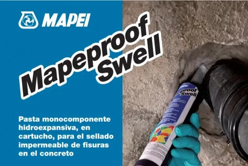 Mapeproof Swell da Mapei é um selante hidro expansivo monocomponente, à base de borracha hidrófila, para selagem impermeável e elástica de fissuras em betão armado ou elementos pré-fabricados com infiltrações de água. Aplicável por extrusão em cartuchos de 320 ml, expande em contato com água (mínimo 100% volumétrico), aderindo a superfícies húmidas ou irregulares, desde limpas e sólidas.