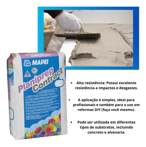 Planiprep Contract é uma argamassa cimentícia monocomponente da Mapei para regularização espatulada em camadas finas (até 3 mm) de substratos cimentícios absorventes, em pisos e paredes, inclusive áreas molhadas.