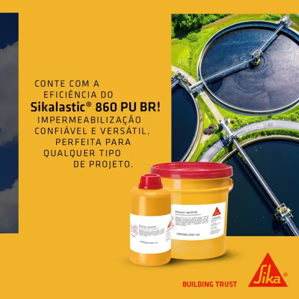 Sikalastic 860 PU BR é uma membrana líquida, à base de poliuretano, bicomponente, isento de solventes, com alta flexibilidade, para impermeabilização de estruturas de concreto. Proporciona acabamento impermeável que dispensa a proteção mecânica podendo receber o assentamento direto do revestimento cerâmico.